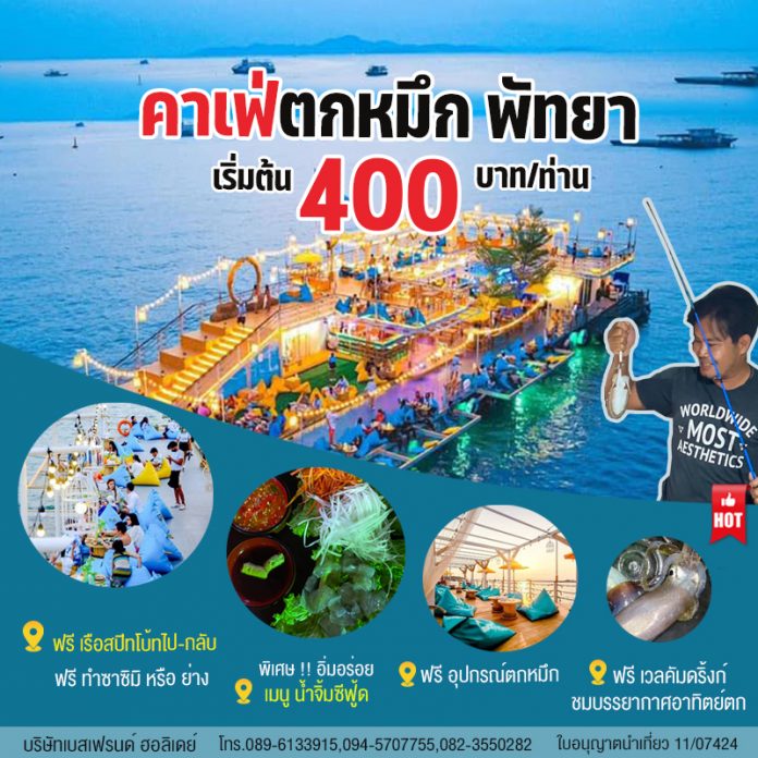 จัดโปรโมชั่น ตกหมึกพัทยา คาเฟ่ตกหมึกพัทยา โดยบริษัทเบสเฟรนด์ ฮอลิเดย์ (ไทยแลนด์) จำกัด เอาใจนักท่องเที่ยวที่ชื่นชอบกิจกรรมตกหมึก พร้อมทานอาหารในสไตล์ คาเฟ่ต์ตกหมึก