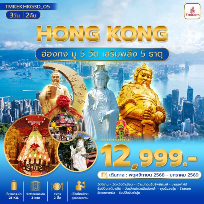 | วันที่ 1 | กรุงเทพฯ (สุวรรณภูมิ) – ฮ่องกง – โรงแรม |