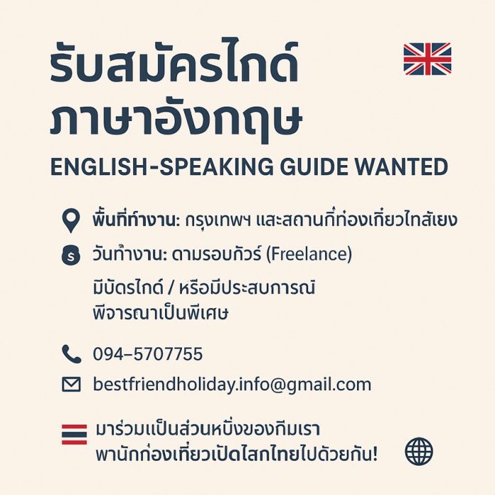 รับสมัครไกด์ภาษาอังกฤษ กรุงเทพ อยุธยา พัทยา และไกด์ต่างประเทศ