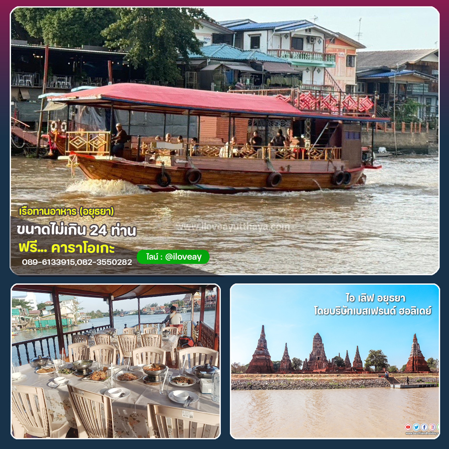 เรือทานอาหารอยุธยา ไม่เกิน 24 ท่าน ฟรีคาราโอเกะ