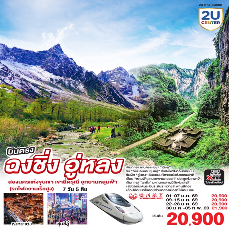 | วันที่ 7 | ฉงชิ่ง – ตรอกเซี่ยฮ่าวหลี่ – ฉงชิ่ง (สนามบินเจียงเป่ย) – กรุงเทพฯ (สนามบินสุวรรณภูมิ) (3U3771 : 16.05 – 18.20) |