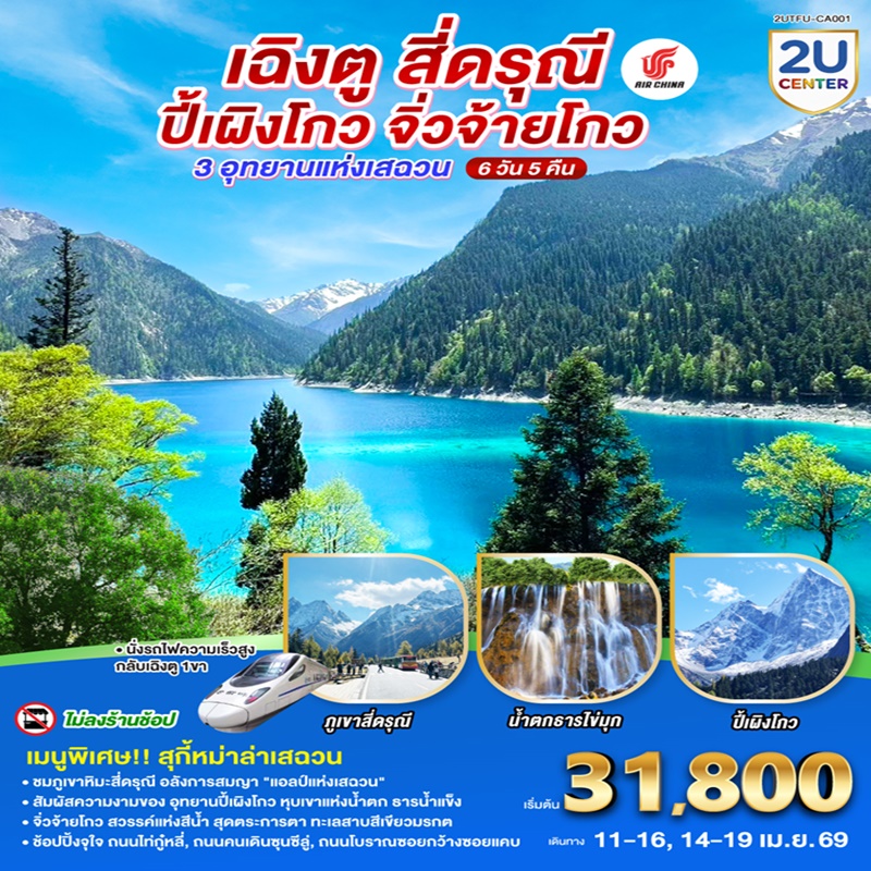 | วันที่ 1 | กรุงเทพฯ สนามบินสุวรรณภูมิ (CA466 : 18.20 – 22.35) – สนามบินเฉิงตูเทียนฟู่ |
