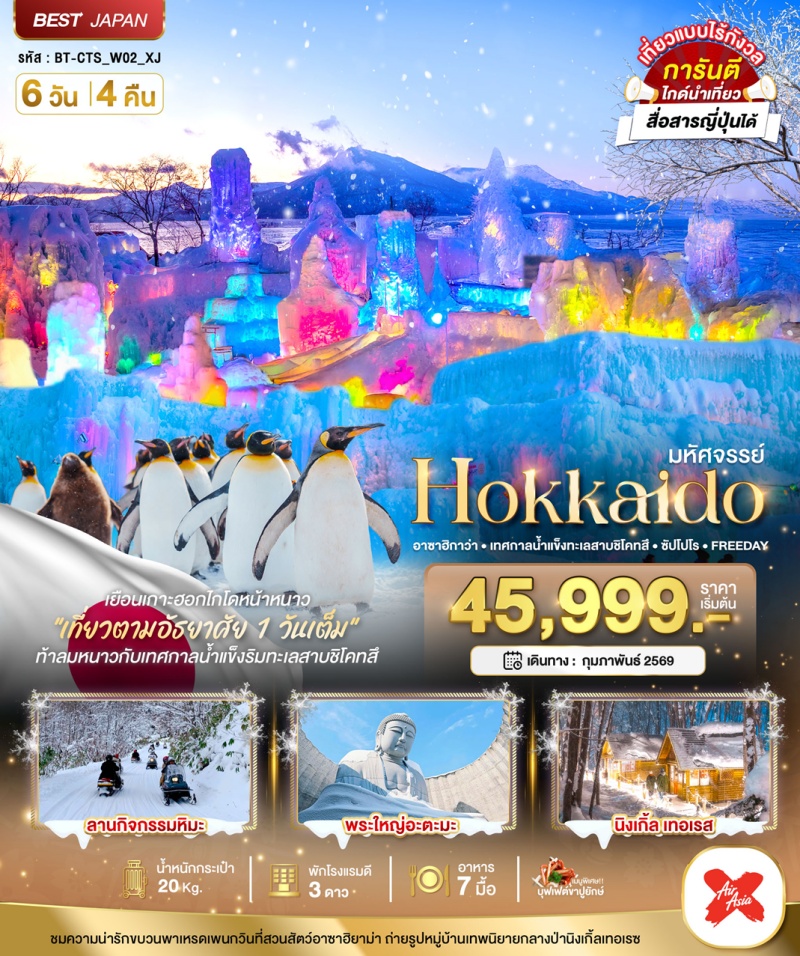 | วันที่ 3 | ลานกิจกรรมหิมะ • สวนสัตว์อาซาฮิยาม่า • ย่านซูซูกิโนะ • บุฟเฟต์ขาปูยักษ์ 3 ชนิด |