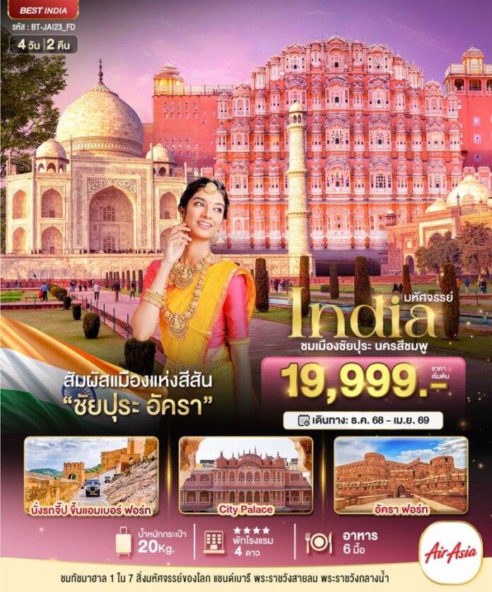 | วันที่ 1 | สนามบินดอนเมือง กรุงเทพฯ • ชัยปุระ อินเดีย |