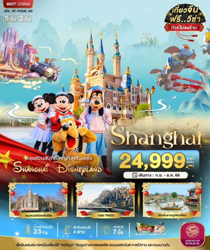 วันที่ 3 | สวนสนุกดิสนีย์แลนด์เซี่ยงไฮ้ (เต็มวัน) |