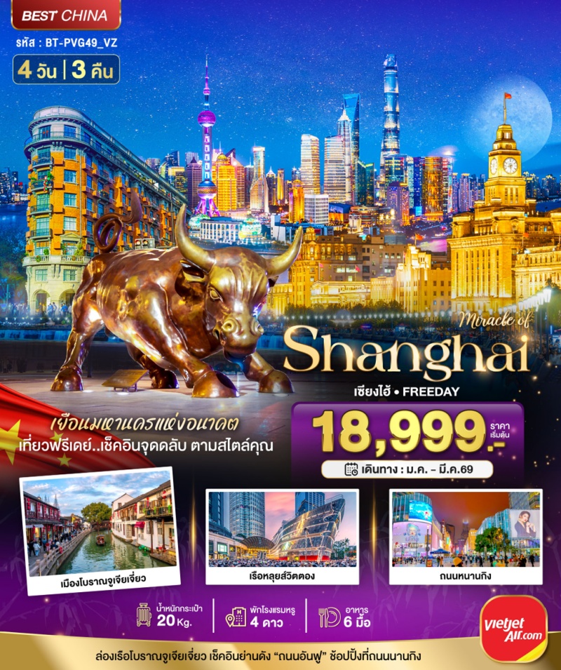 | วันที่ 2 | อิสระท่องเที่ยวตามอัธยาศัย หรือเลือกซื้อบัตรสวนสนุกเซี่ยงไฮ้ดิสนีย์แลนด์ |