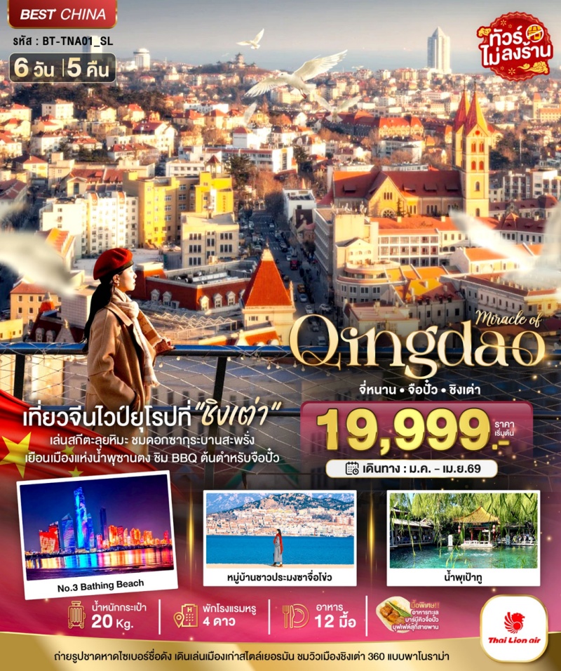 | วันที่ 2 | เมืองจือปั๋ว • พิพิธภัณฑ์แก้วเซรามิก • ตลาดปาต้าจ๋วย • เมืองชิงเต่า • โบสถ์เซนต์ไมเคิล • ถนนวัฒนธรรมต้าเปา • ย่านเมืองเก่าสไตล์เยอรมัน-จีน (ซอยยิ้นอวี่) • สะพานจ้านเฉียว • ถนนเลียบชายหาดปินไห่ปู้จ้านเต่า • ถนนคนเดินจงซาน |
