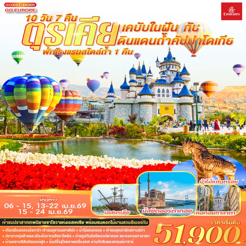 | วันที่ 2 | สนามบินสุวรรณภูมิ – สนามบินดูไบ – สนามบินอิสตัลบูล (ตุรเคีย) – สวนดอกไม้อีเมอร์กัน |