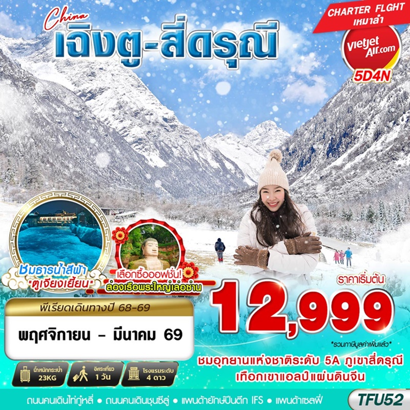 | วันที่ 1 | กรุงเทพฯ(สุวรรณภูมิ) – ท่าอากาศยานเฉิงตูเทียนฟู่ – เข้าโรงแรม |