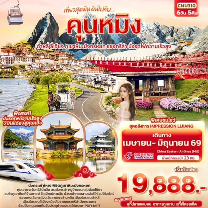 | วันที่ 1 | ท่าอากาศยานนานาชาติสุวรรณภูมิ – ท่าอากาศยานนานาชาติคุนหมิงฉางสุ่ย – เมืองฉู่สง MU6088 BKK-KMG 13.20-16.45 |