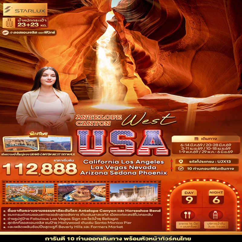 | วันที่ 5 | เมืองวิลเลียมส์ – เมืองเพจ – โลเวอร์แอนเทอโลปแคนยอน + โค้งเกือกม้าของแม่น้ำโคโลราโด – เมืองเพจ |