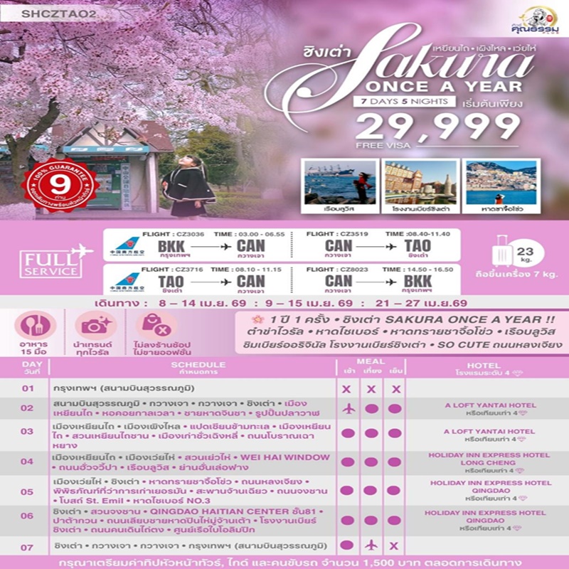 | 9 – 15 เมษายน 2569 | 33,999 บาท/ท่าน |