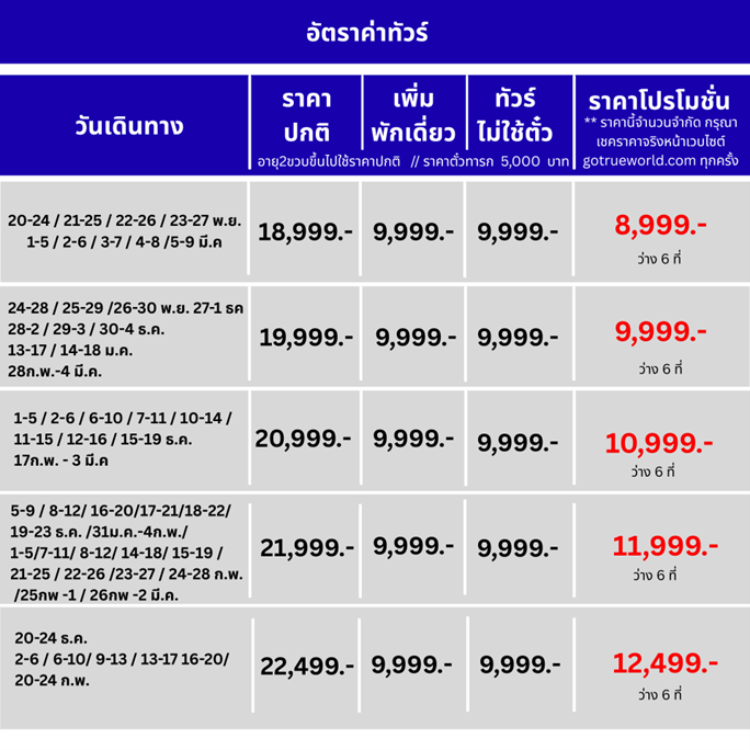 กำหนดการเดินทาง
