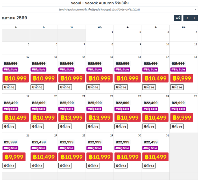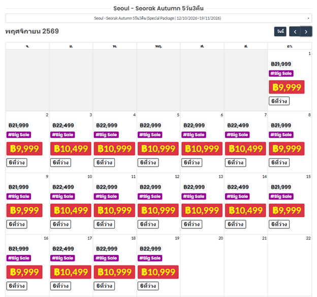 โค้ดทัวร์ : BTF_Seoul-Seorak-OCT-NOV26