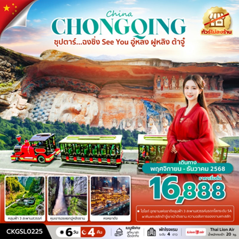 | วันที่ 1 | ท่าอากาศยานนานาชาติดอนเมือง – ท่าอากาศยานนานาชาติฉงชิ่งเจียงเป่ย – โรงแรมที่พัก |