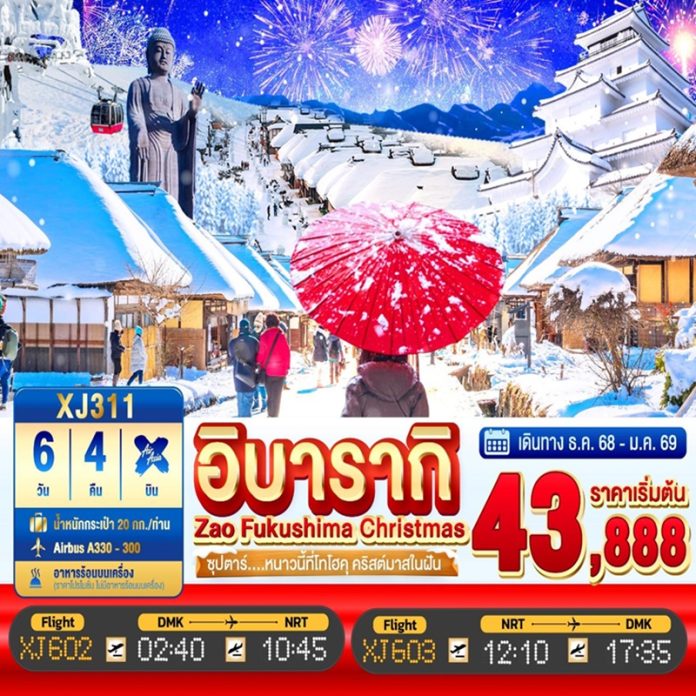 | วันที่ 4 | จังหวัดฟุกุชิมะ – เมืองเซนได – ดิวตี้ฟรี – จังหวัดยามากาตะ – กระเช้าลอยฟ้าซาโอะ – เมืองโคริยามะ |