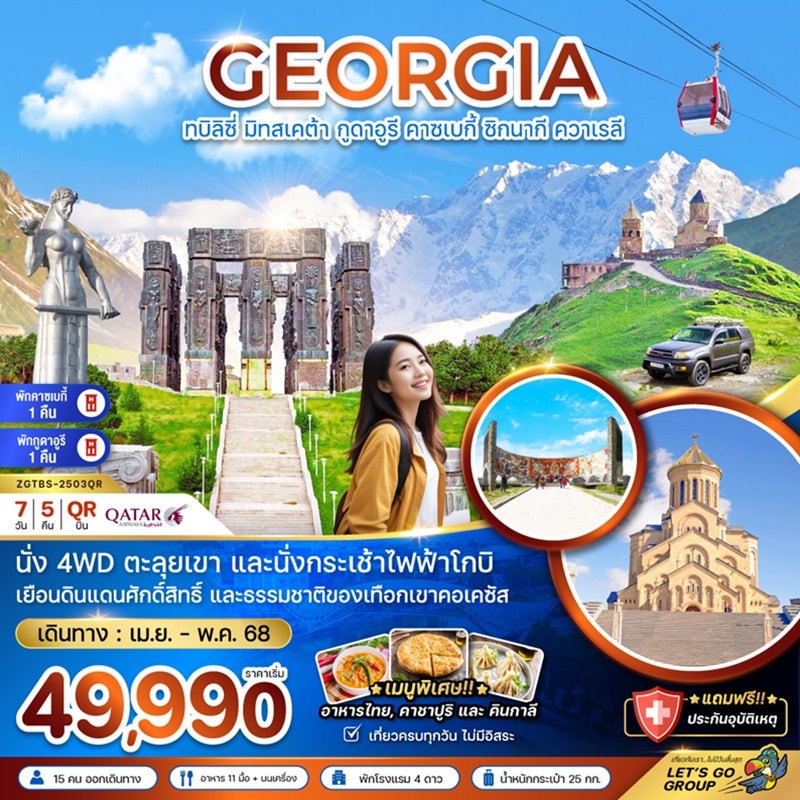 | วันที่ 3 | รถจี๊บ 4WD – โบสถ์เกอร์เกตี้ – อนุสรณ์สถานรัสเซีย&จอร์เจีย – นั่งกระเช้าไฟฟ้าโคบิ-กูดาอูรี – เมืองกูดาอูรี |