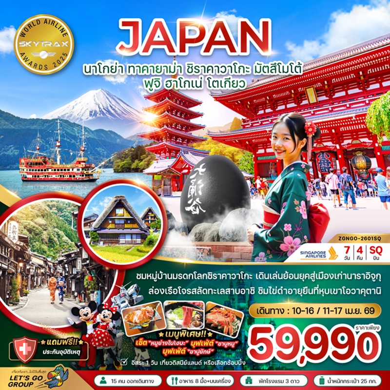 ทัวร์ญี่ปุ่น นาโกย่า ทาคายาม่า ชิราคาวาโกะ มัตสึโมโต้ ฟูจิ ฮาโกเน่ โตเกียว 7 วัน 4 คืน