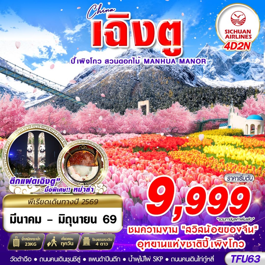 ทัวร์จีนมีนาคม หลายท่านที่กำลังมองหาทัวร์เส้นทางที่ราคาสุดคุ้ม ทัวร์จีนเดือนมีนาคม เน้นเที่ยวธรรมชาติสวยๆ เส้นทางยอดนิยมในตอนนี้ เฉิงตูเดือนมีนาคม เป็นอีกหนึ่งเส้นทางที่แนะนำ ราคาทัวร์เริ่มต้น 000000 บาท มีให้เลือกหลากหลายสายการบิน นักท่องเที่ยวนิยมากและเที่ยวได้ตลอด เส้นทางนี้สามารถเที่ยวรวมกับสีดรุณีได้ เรียกได้ว่าสวยมาก อากาศเย็นสบาย ได้ภาพสวยๆ ราคาพิเศษ