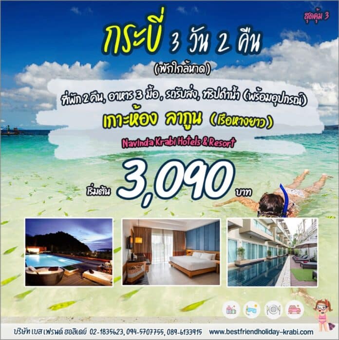 ทัวร์กระบี่ 3 วัน 2 คืน เกาะห้อง