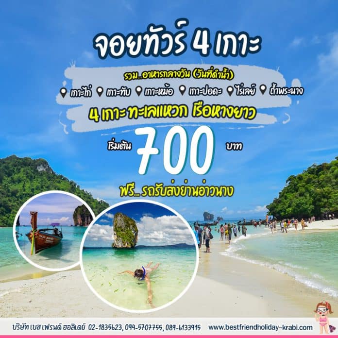 ทัวร์ 4 เกาะ กระบี่ บริการจัดทัวร์ดำน้ำ จ.กระบี่ ทัวร์ 4 เกาะทะเลแหวก คุณภาพดี