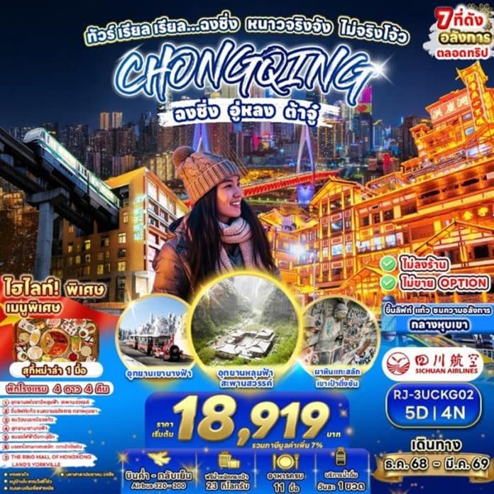 มีนาคม 69 : 18 – 22 | 19 – 23 | 20 – 24 | 21 – 25 | 22 – 26 25 – 29 | 26 – 30 | 27 – 31 | 28 มี.ค. – 01 เม.ย. 29 มี.ค. – 02 เม.ย. | 30 มี.ค. – 03 เม.ย. | 31 มี.ค. – 04 เ.ม.ย. | 16,900.- |