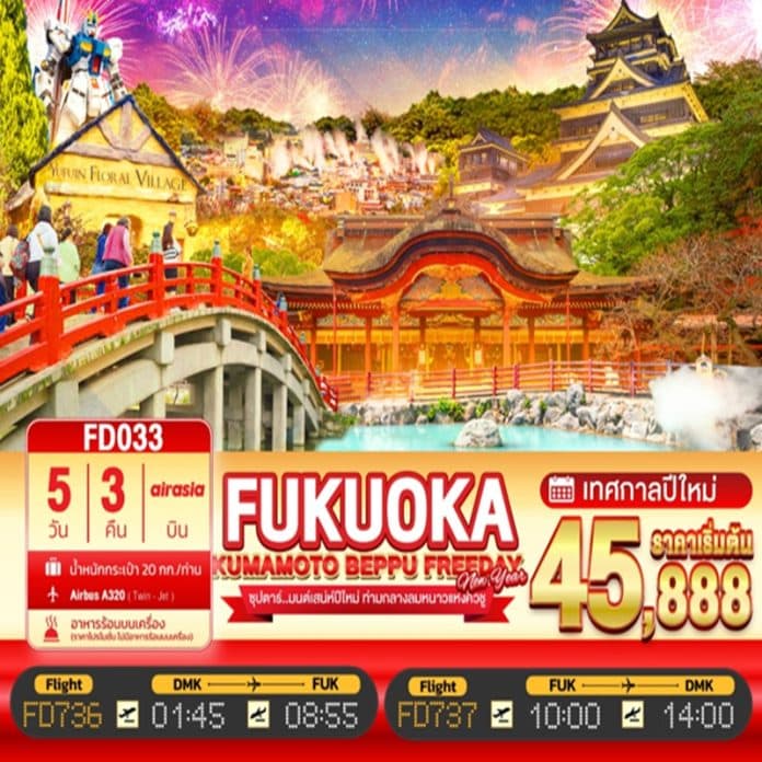 | วันที่ 5 | ท่าอากาศยานนานาชาติฟุกุโอกะ – ท่าอากาศยานดอนเมือง FD737 (10:00 – 14:00) |