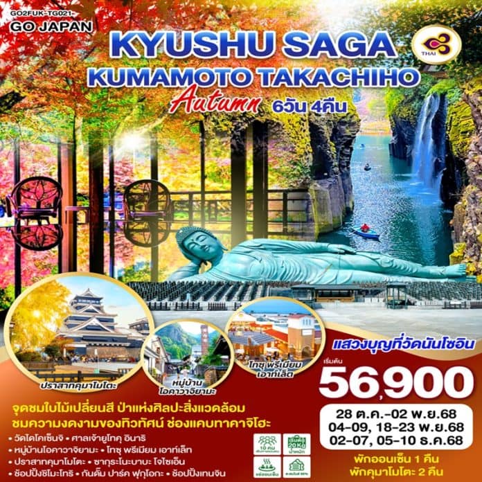 | วันที่ 6 | คิวชู (สนามบินฟุกุโอกะ) – กรุงเทพฯ (สนามบินสุวรรณภูมิ) (TG 649 11.40 – 15.40) |