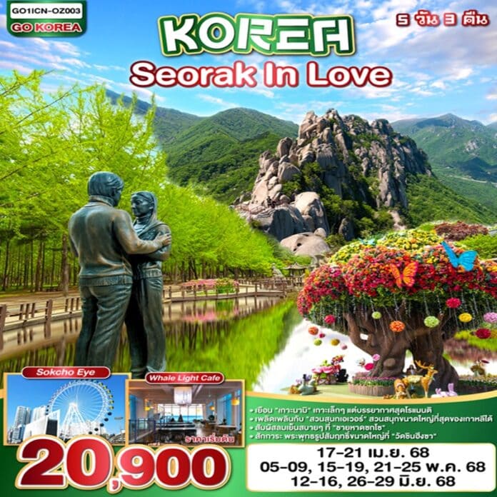 | วันที่ 3 | อุทยานแห่งชาติซอรัค (ไม่รวมค่าขึ้นเคเบิ้ล) – วัดชินฮึงซา – สวนสนุกเอเวอร์แลนด์ – ศูนย์เวชสำอาง – ฮงแดช้อปปิ้งสตรีท |